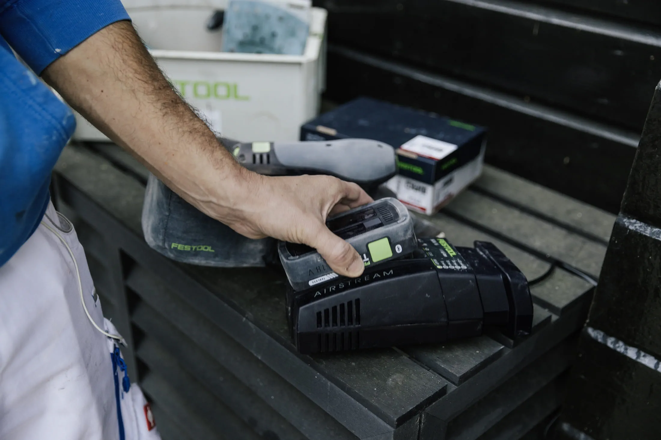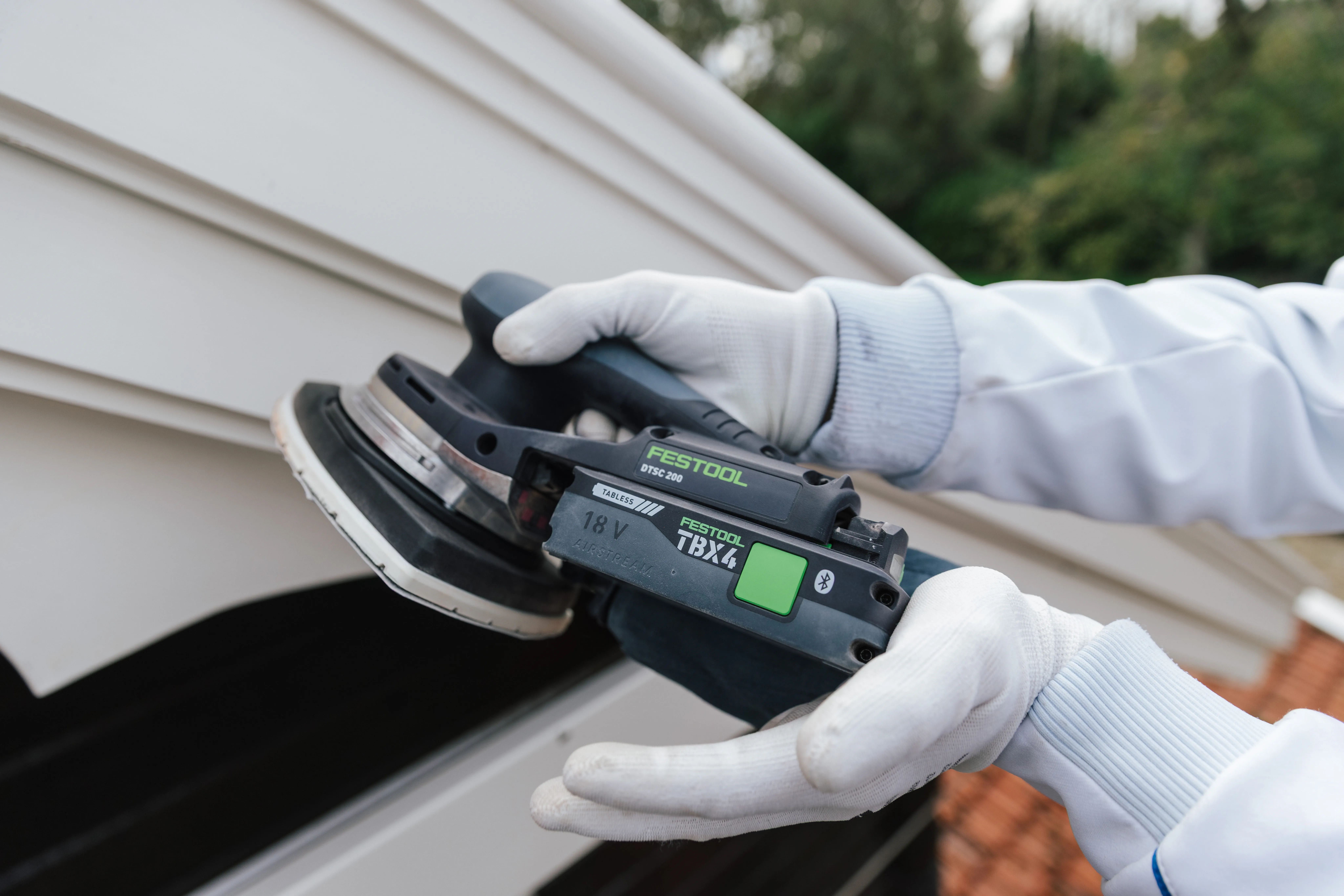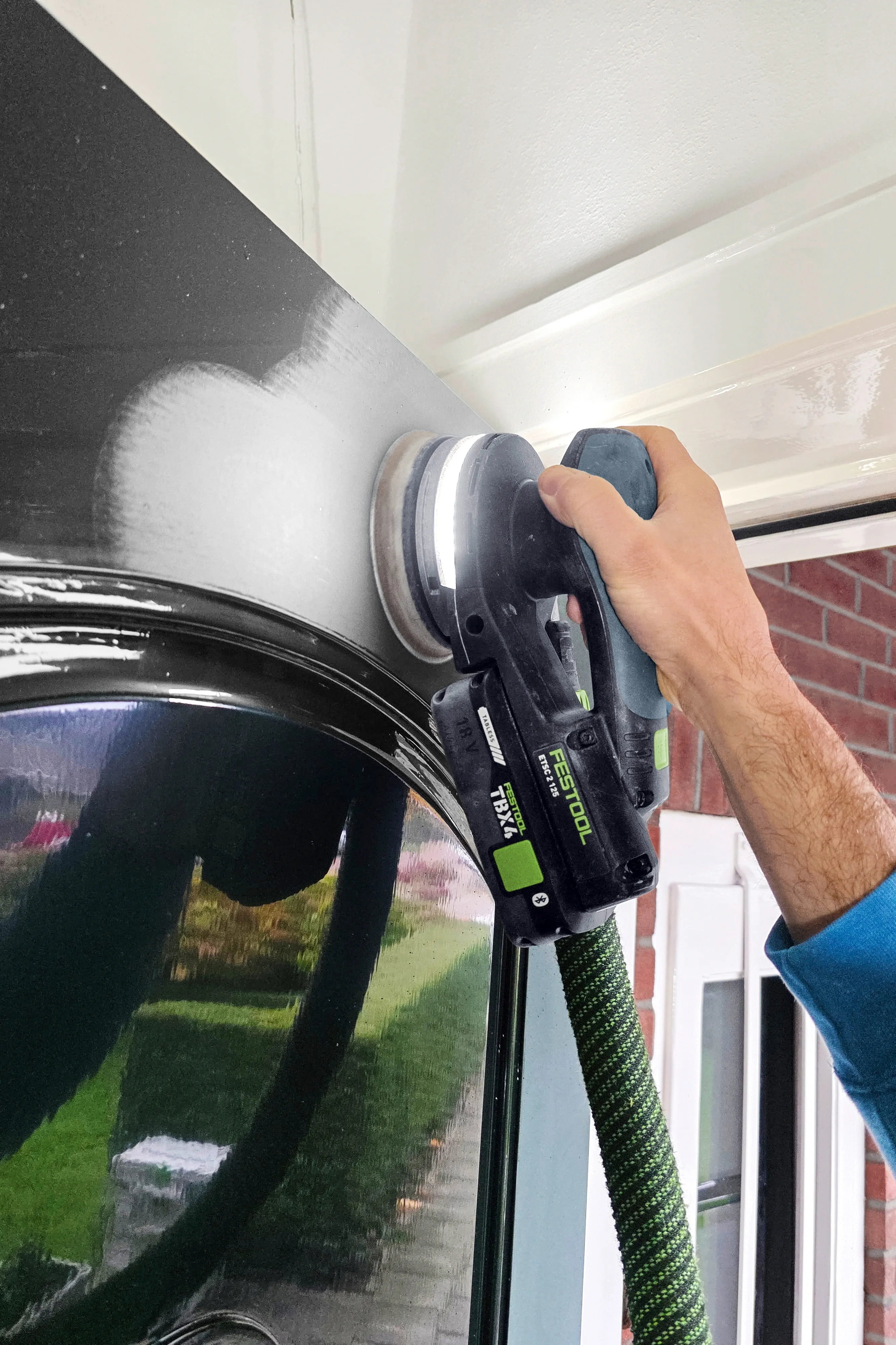 Luke si osvojil, že příprava povrchu internalizována, je pro lakýrnické práce klíčová. Zásadní pro lakýrnické práce. A to je přesně to, co Festool jsou brusky stvořeny. Luke oceňuje zejména že Festool myslí vždy o krok dál o krok napřed. "Vibrační bruska DTSC 200 opravdu překvapila. Opravdu mě překvapila. Skutečnost, že můžete použít novou delta brusný papír lze použít třikrát, je skvělé. Velmi užitečný je také Světelný modul." A kývnutí na nový Tabless TBX 4 baterie od něj. Zejména na něm je výhodné, že akumulátorové brusky pracují déle a lze je ještě rychleji nabíjet. lze nabíjet ještě rychleji.
