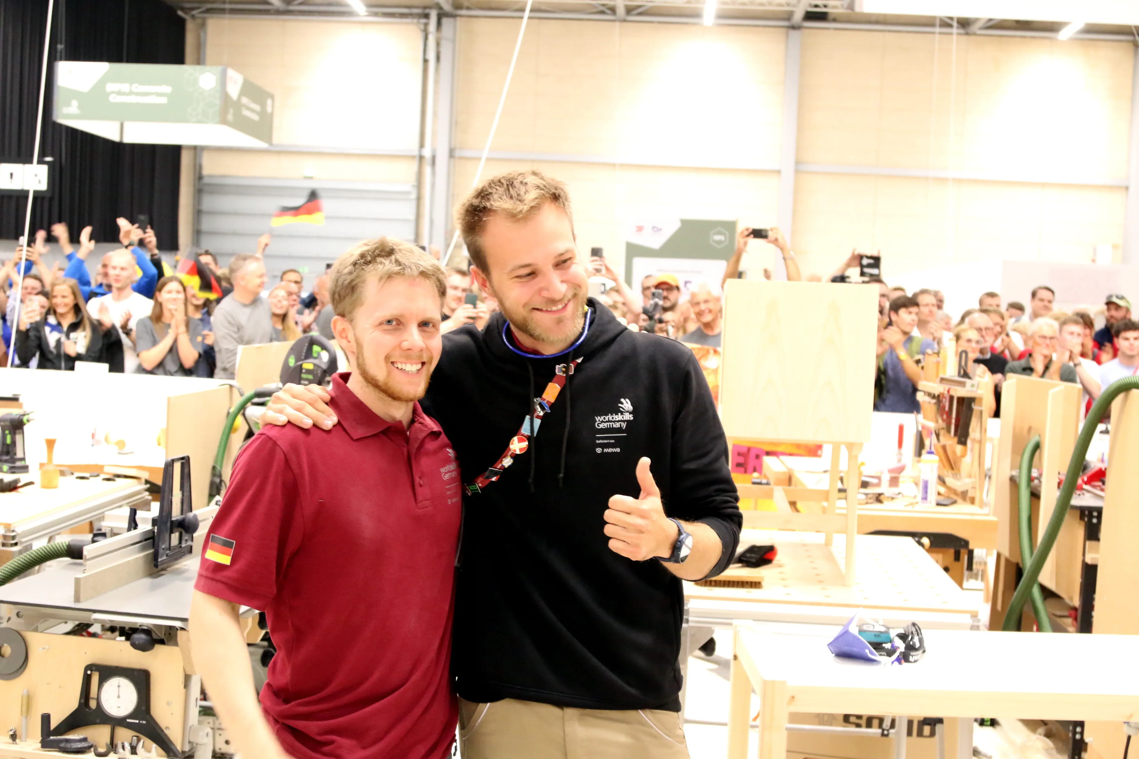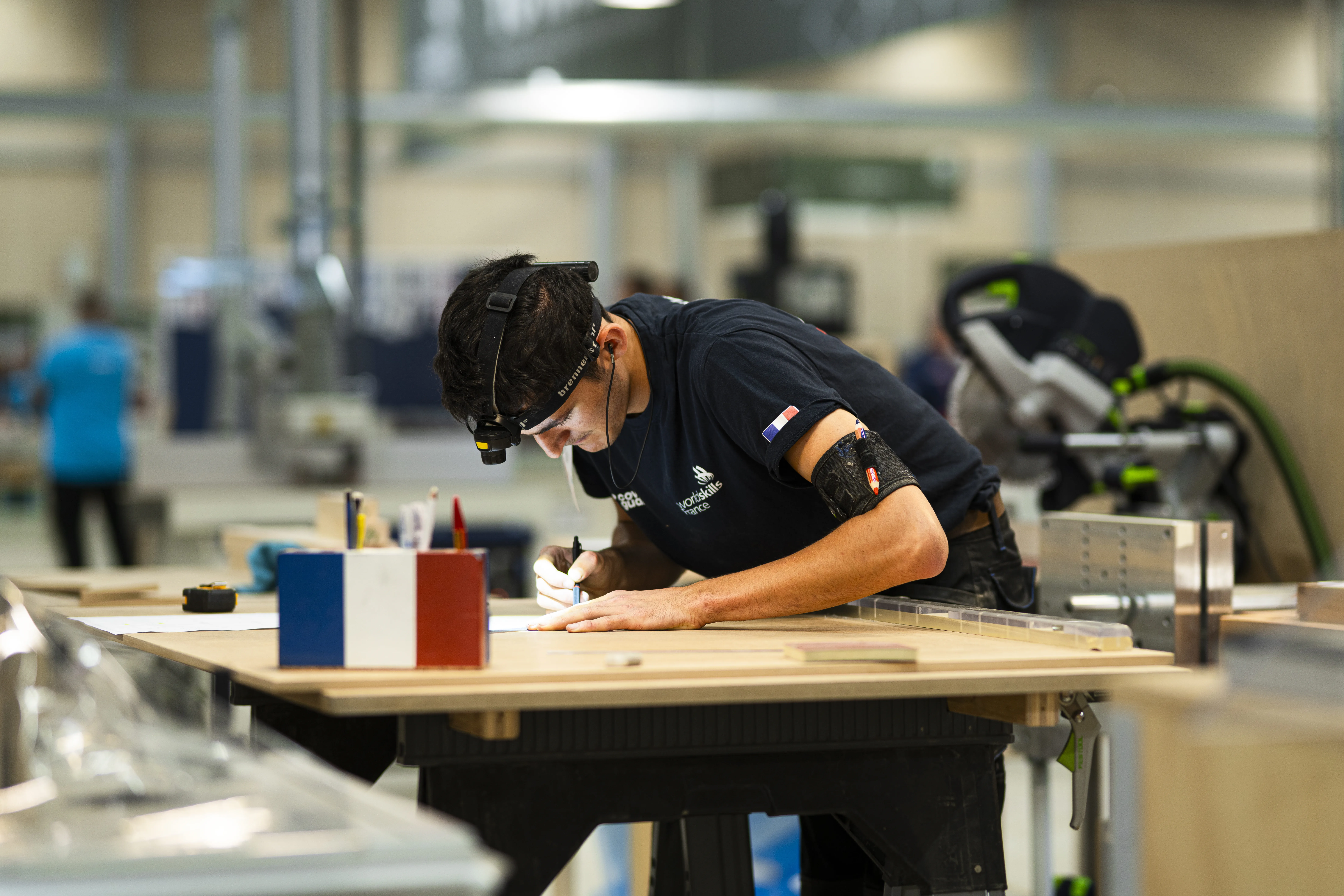 "Nikdy jsem necítil ve vzduchu tolik napětí," řekl nám jeden z návštěvníků, zatímco německý truhlář Linus Großhardt zcela uvolněně kontroloval svou práci se svým trenérem 20 minut před závěrečným zvoněním. V posledních minutách ostatních truhlářských, stavebních a stolařských soutěží převládal čistý adrenalin.