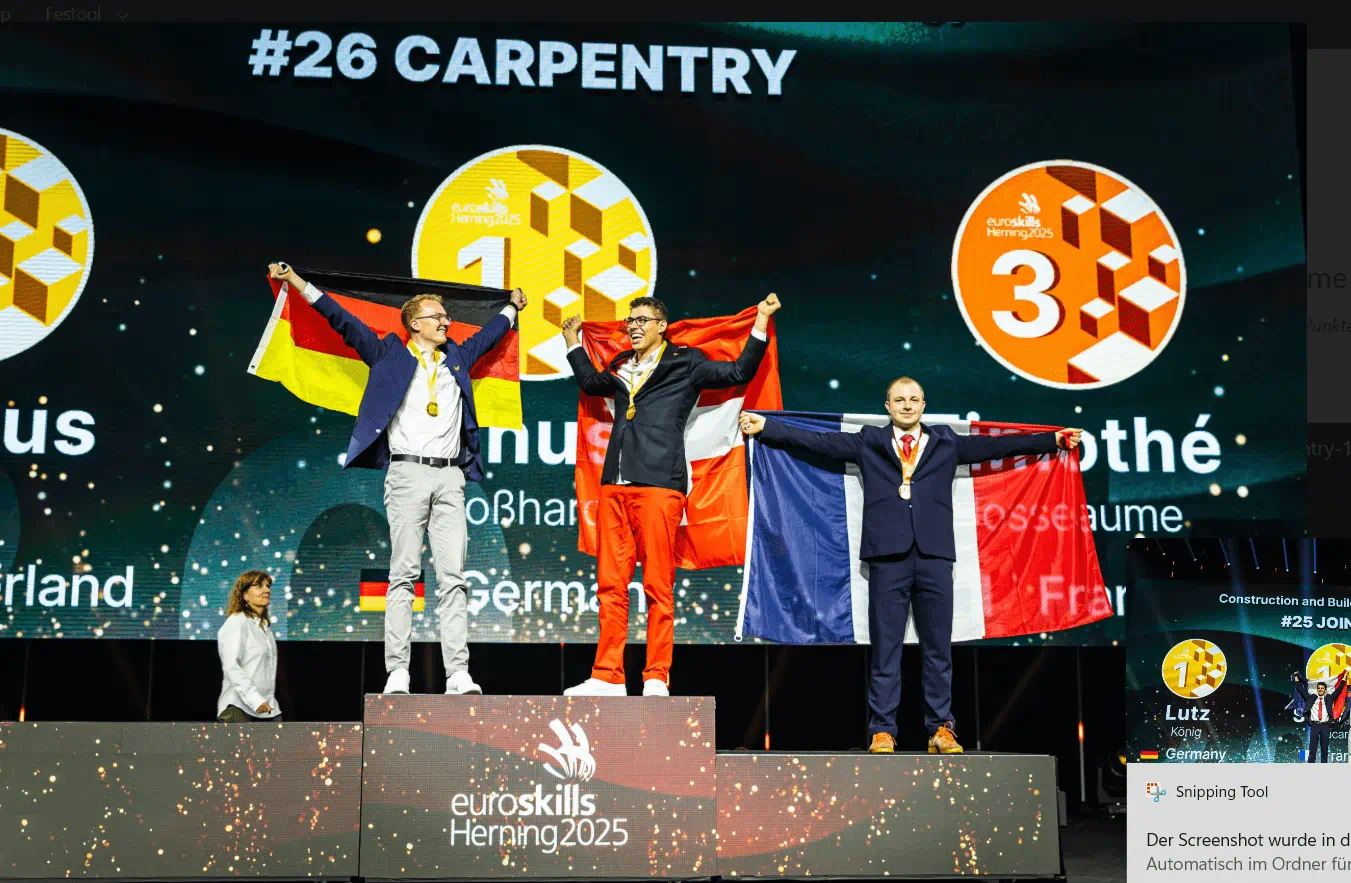 Za kvalitu, za řemeslnou zručnost, za budoucnost: Festool byl hrdým prémiovým sponzorem v pěti profesních skupinách. Více než 103 000 návštěvníků, 600 účastníků z 33 zemí a 38 profesních skupin - to vše ukázalo: Řemeslo je bez hranic, živé a plné perspektiv. Jsme hrdí na to, že jsme mohli být součástí této působivé soutěže se všemi jejími mladými talenty, a už se těšíme na příští ročník EuroSkills 2027 v Düsseldorfu a Lucemburku. Opět nám bylo blízké podporovat mladé talenty a přispívat k budoucnosti kvalifikovaných řemesel.