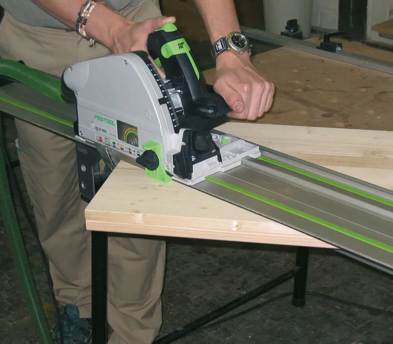 Nakreslí se vnější hrany postranních dílů. Pomocí okružní pily a vodicí lišty nebo přímočaré pily se provedou přímé řezy.