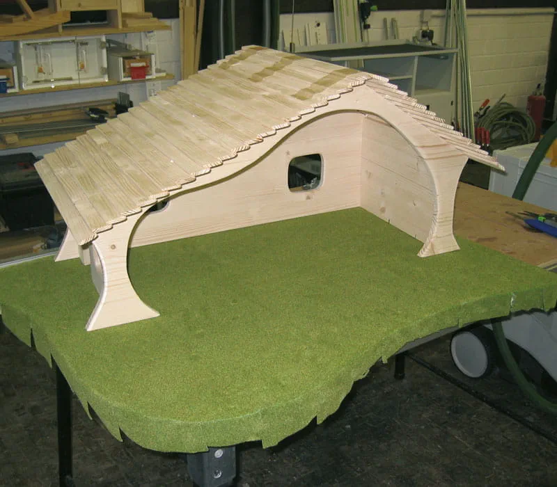 Lepidlem ve spreji se přilepí zelená umělá tráva nebo plsť na základní desku jesliček. Jesličky se zespodu přišroubují (poz. 7).