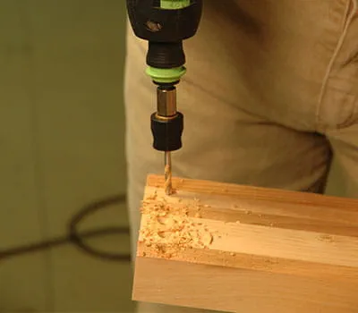 Vyznačte šířku zakončovacích lišt na střešních trámcích a uřízněte rohy stolní okružní pilou. Vyznačte spojovací otvory pro šrouby mezi zakončovacími lištami a trámky a vyvrtejte otvory (D = 4 mm). Sešroubujte trámky a zakončovací lišty. Střešní trámky a vnější obložení střechy se slepí.