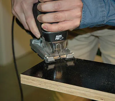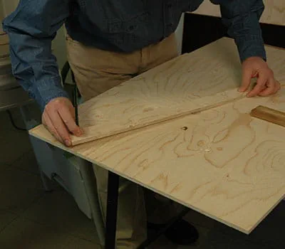 Nechte si nařezat desky z překližky podle údajů v seznamu materiálu. Pokud si chcete jednotlivé desky nařezat sami, nejjednodušší je položit na zem jako podložky latě a poté desky uříznout pomocí ponorné pily a vodicí lišty. Ukázalo se, že je vhodné začít se stavbou obou bočních stěn
