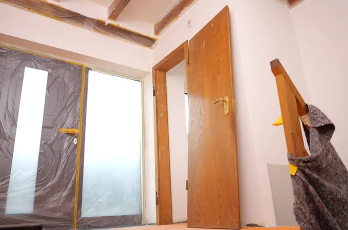 Nátěr dveří z přírodního dřeva na bílo