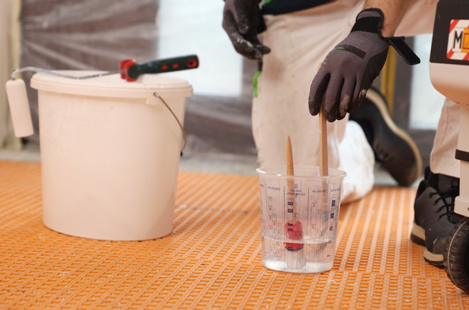 Před lakováním se povrchy znovu očistí hadříkem na vázání prachu. Na špatně přístupných místech maskujte stěnu například zlatou páskou. Malířské nářadí a podkladový nátěr, které se mají použít, jsou připraveny a mohou být umístěny na CTMC Midi v pohodlné pracovní výšce. pro jejich ochranu doporučujeme zakrýt Odsávání novinami a nářadí a barvu uložit do kbelíku, aby nedošlo ke zbytečnému znečištění.