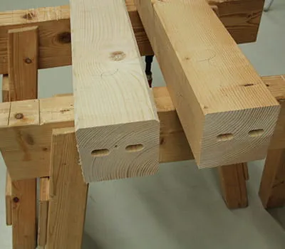 Použitím plochých kolíků pro přesnou polohu konstrukčního dřeva se dosáhne rychlého a jednoduchého spojení trámu a sloupku.