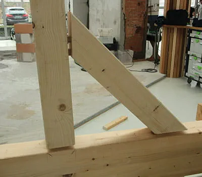 Při spojování konstrukčního dřeva se tradiční spoje dřeva pomocí čepu a dlabu dnes často nahrazují různými kovovými spoji (šrouby, úhelníky, svorníky atd.). Výhodnou tradičních spojů dřeva je jednoduchá montáž, protože trámy a sloupky do sebe lze nasadit. V tomto příkladu použití jsou místo čepového spoje použity ploché kolíky pro vytvoření zásuvného spoje. Tím se zrychlí montáž a dosáhne se nejčistších výsledků. Používá se hlavně frézka na kolíkové otvory Domino XL.