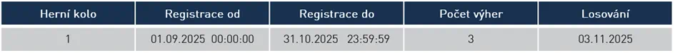 Slosování výherců, kteří obdrží Výhru 1 až 3, bude probíhat v jednom kole.